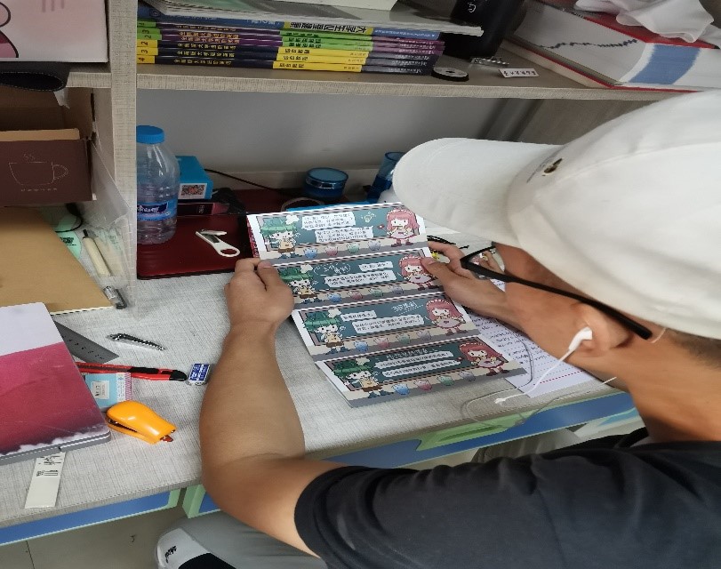 学生自己动手制作宿舍垃圾分类小标识包含卡片、折纸、废物再利用等,积极主动加入到垃圾分类行动中去。