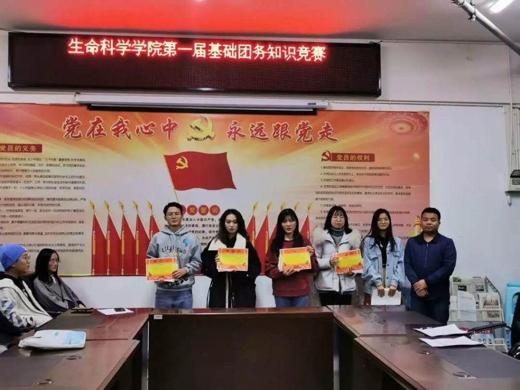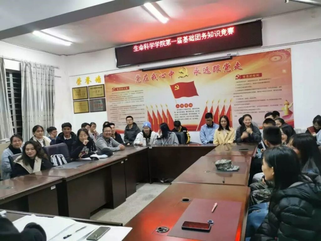 为了进一步培育和弘扬社会主义核心价值观,加强基层团支部建设,培养团员青年自主管理的能力,12月15日,生命科学学院团委在学院党员活动室举办了第一届基础团务知识竞赛,生命科学学院团委书记毛祥忠老师、团委学生副书记陈琪以及各团支部支委参加比赛。
