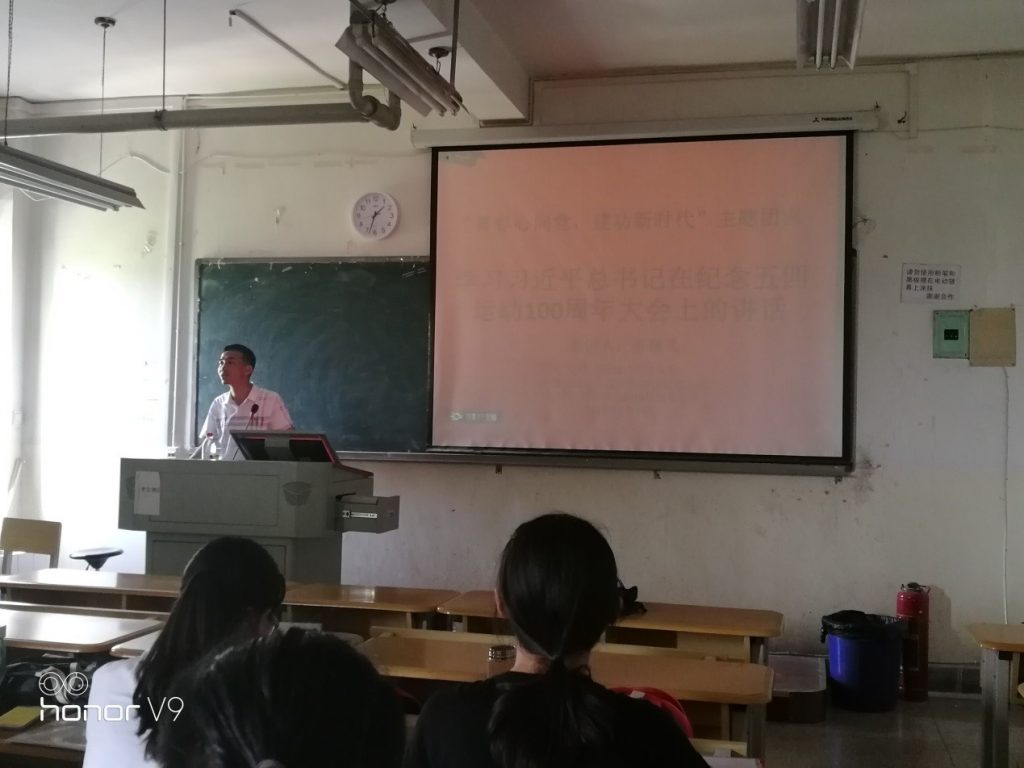 2019年5月14日,由机械与交通学院党委副书记陈继飞为青年团员上“青春心向党,建功新时代”主题团课,营造青年团员深入学习习近平总书记在纪念“五四”运动100周年大会上的重要讲话精神的氛围与形势。在课上,陈副书记说,新一代的共青团员应当做到爱国、爱党、爱社会主义;坚持道路自信、理论自信、制度自信、文化自信这四个自信;做到坚决维护习近平总书记党中央的核心、全党的核心地位,坚决维护党中央权威和集中统一领导这两个维护。并对机械与交通学院青年团员提出了树立远大理想、热爱伟大祖国、担当时代责任、勇于砥砺奋斗、练就过硬本领、锤炼品德修为六点要求。
