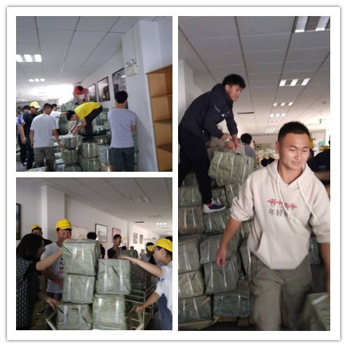 同学们先来到图书馆堆放书籍的地方,将打包好的图书按字母进行分类,再将数十斤重的书籍搬运到对应位置。尽管手臂酸痛,尽管满头大汗,同学们的心仍然是火热的。
