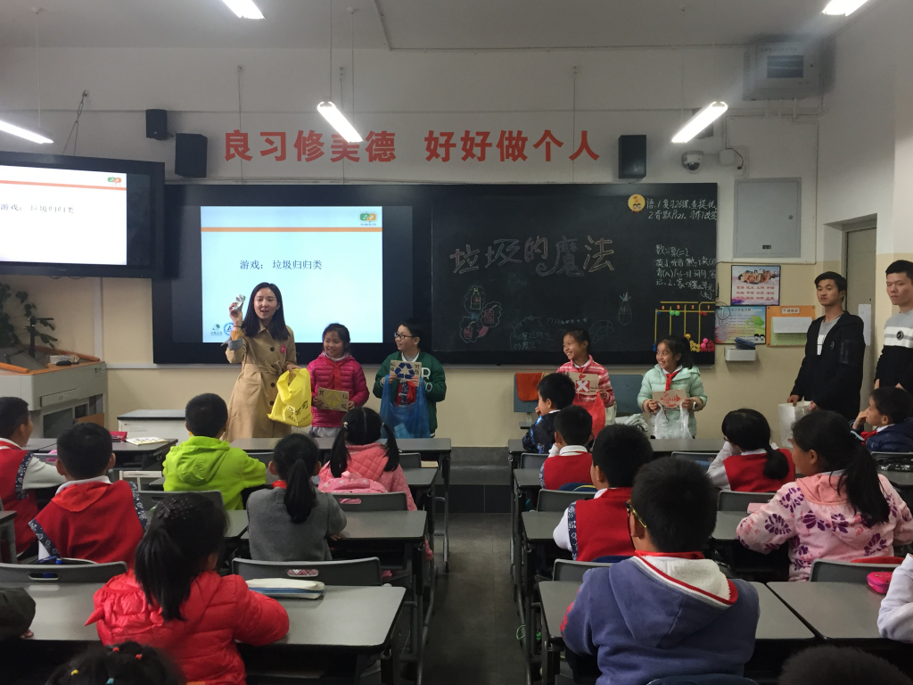 课堂气氛十分活跃且充满了科普知识,同学们听得很入迷并积极举手回答问题。为了加深小学生对“垃圾的魔法”课程的理解,课堂上还为同学们分发了笔记本,让他们在日常生活中记录下自己的垃圾分类的小事件,使同学们养成“垃圾分类从我做起”的理念。