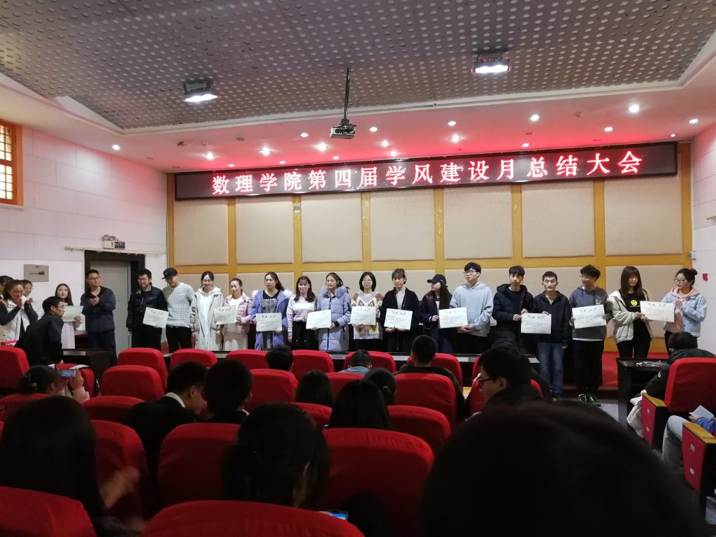 会上,谢爽副书记宣读了《西南林业大学数理学院关于表彰2018年度第四届学风建设月优秀个人、优秀宿舍的通知》,莅临本次大会的领导、老师为优秀个人、优秀宿舍等获奖学生颁奖。
